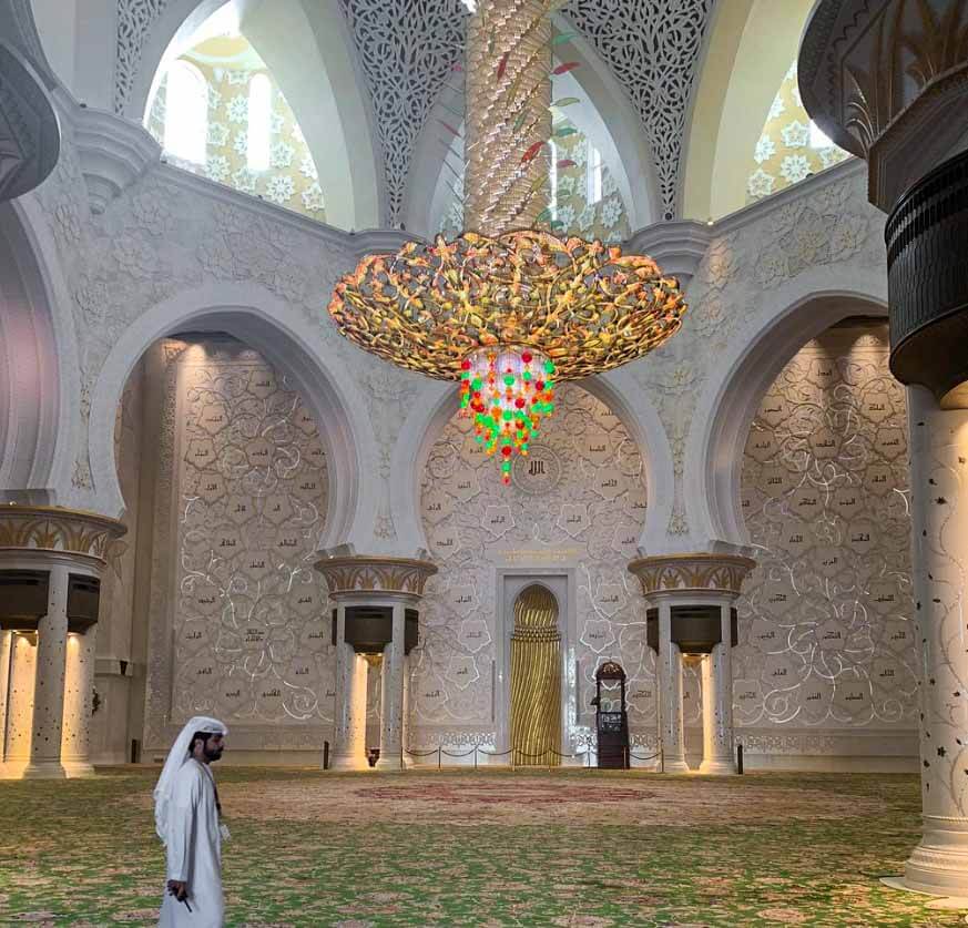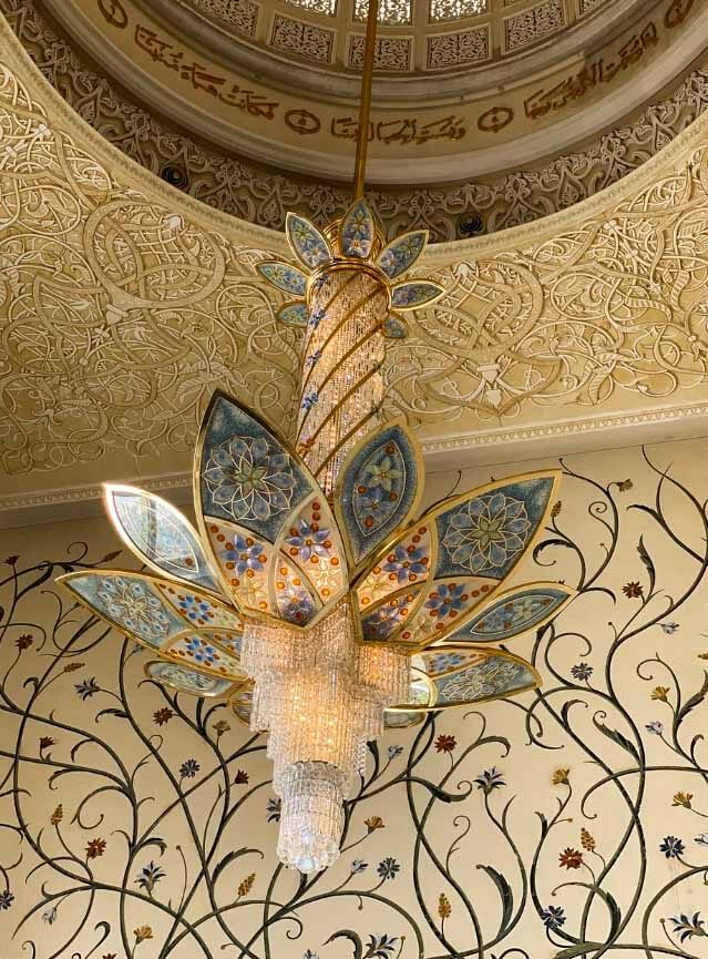 The Sheikh Zayed Grand Mosque has many special and unique elements: The carpet in the main prayer hall is considered to be the world’s largest carpet made by Iran’s Carpet Company and designed by Iranian artist Ali Khaliqi.