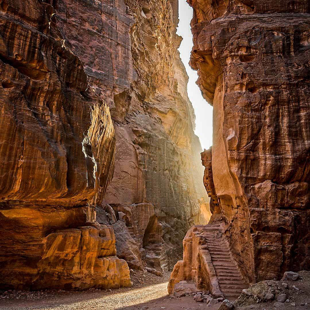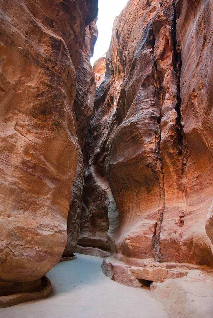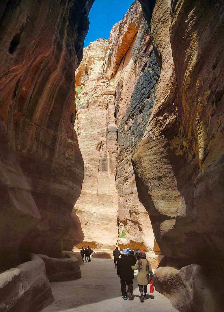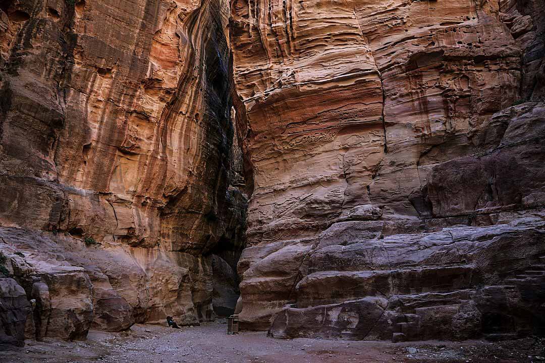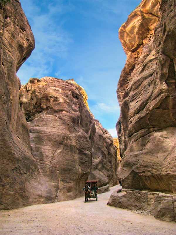 Also known as Siqit, it is a dim, narrow gorge (in some points no more than 3 metres (10 ft) wide) and winds its way approximately 1.2 kilometres and ends at Petra’s most elaborate ruin, Al Khazneh (the Treasury).