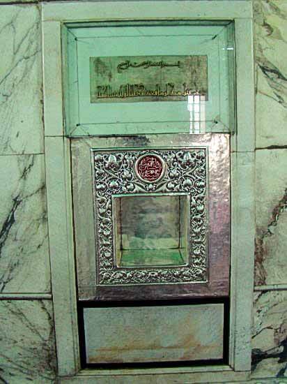Inside the station of Imam Zayn al-Abidin رضي الله عنه, there is a very small room made of silver at the size of the head of a person made in the wall as a remembrance for the place of the blessed head of Imam رضي الله عنه.