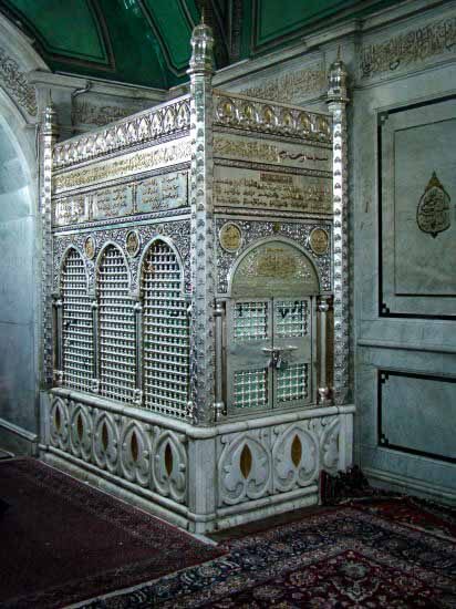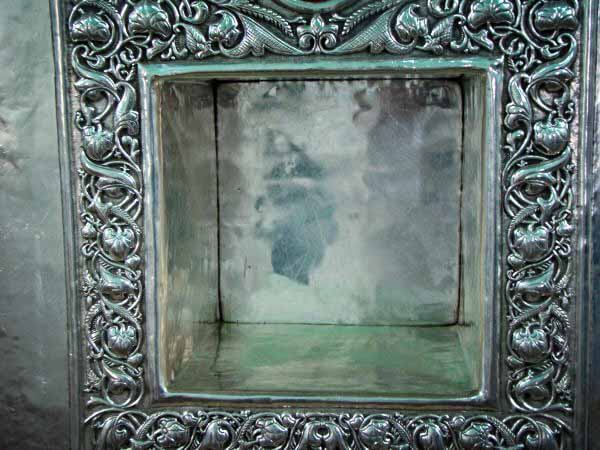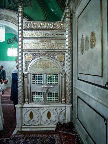 Inside the station of Imam Zayn al-Abidin رضي الله عنه, there is a very small room made of silver at the size of the head of a person made in the wall as a remembrance for the place of the blessed head of Imam رضي الله عنه.
