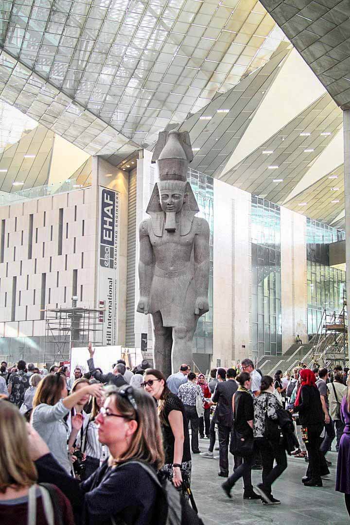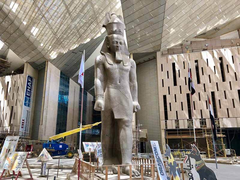 The Egyptian government decided to relocate it to a more appropriate location in 2006. At a temporary site on the Giza Plateau it underwent restoration before being moved into the staircase close the entrance of the Grand Egyptian Museum (GEM) in Giza in 2018.