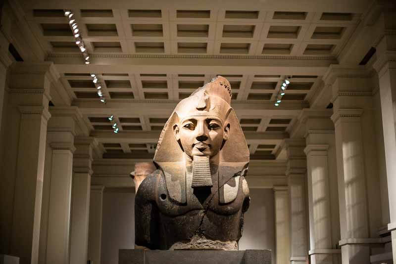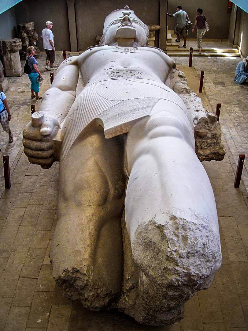 The Statue of Ramesses II is a 3,200-year-old figure of Ramesses II, depicting him standing. It was discovered in 1820 by Giovanni Battista Caviglia at the Great Temple of Ptah near Memphis, Egypt. It is made from red granite.
