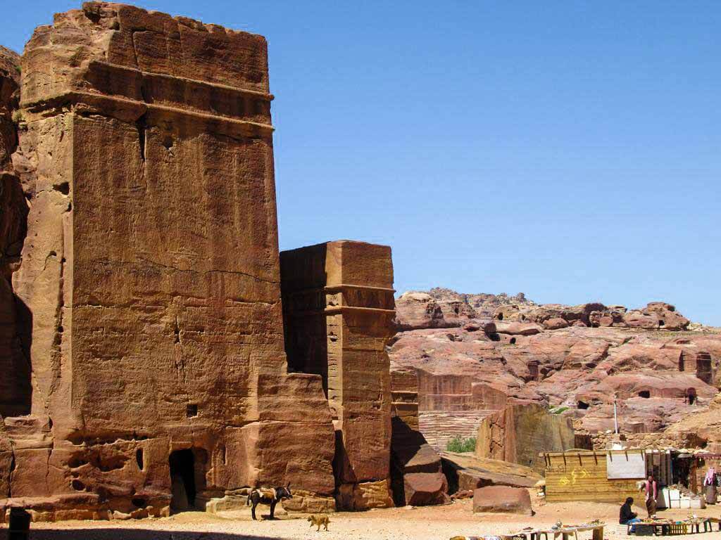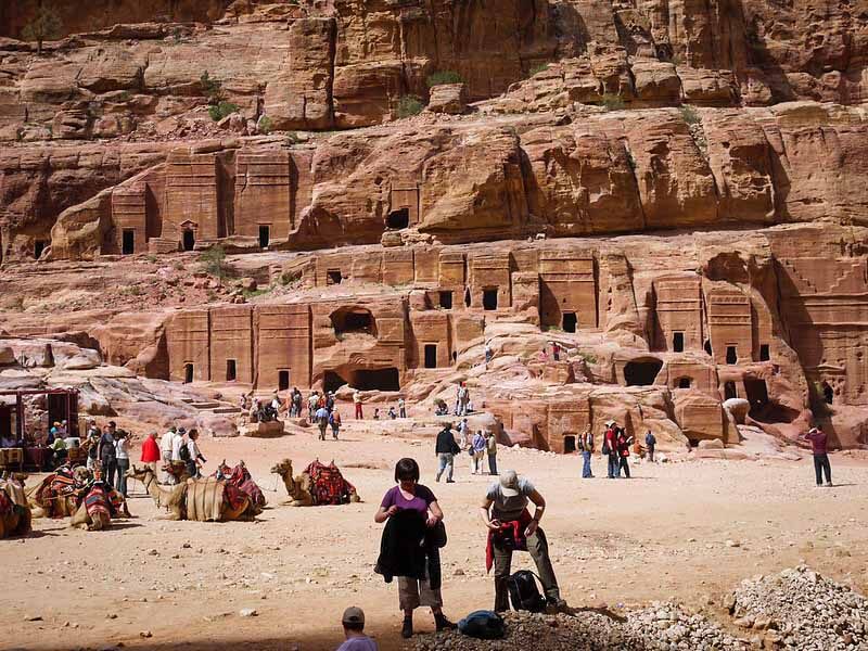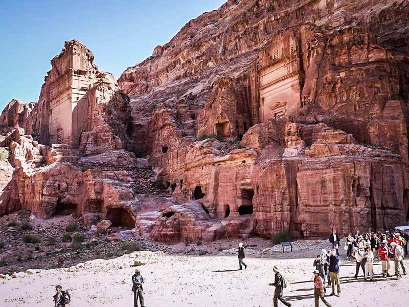 Just past the Treasury, the path widens into an open section called the Street of Facades. Like a row of town homes, the street is lined with tall, impressive tombs and houses carved into the rock walls
