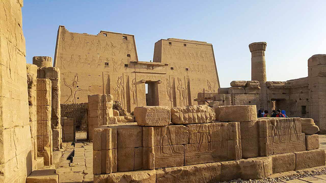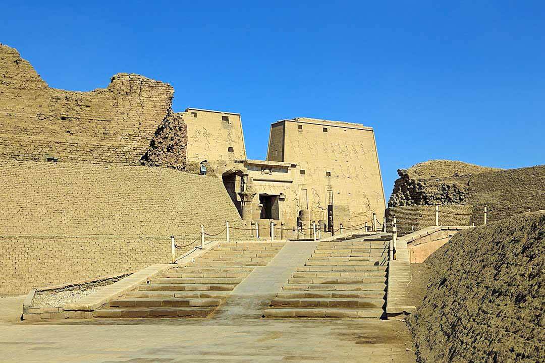 The Temple of Edfu is nearly intact and a very good example of an ancient Egyptian temple. The Its archaeological significance and high state of preservation has made it a centre for tourism in Egypt and a frequent stop for the many riverboats that cruise the Nile.