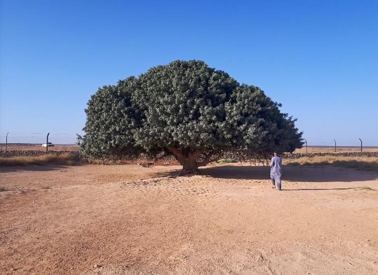 This tree is one of the miracles of Allah as it is the only tree standing in the area of 25+ square kilometers in the desert.