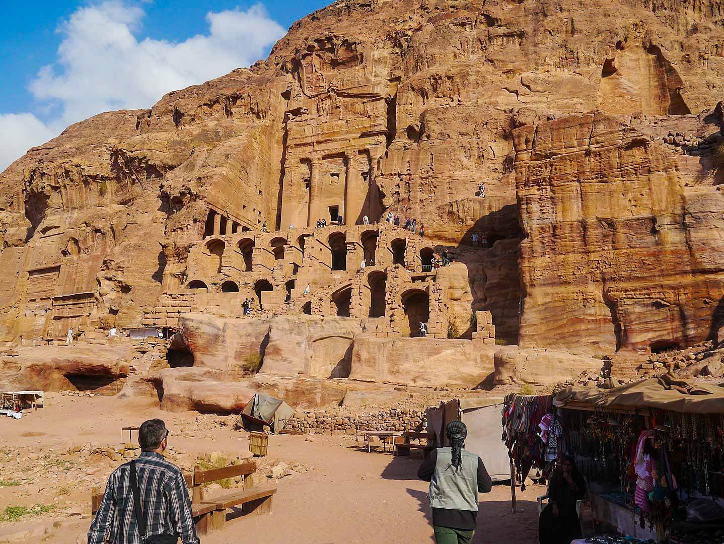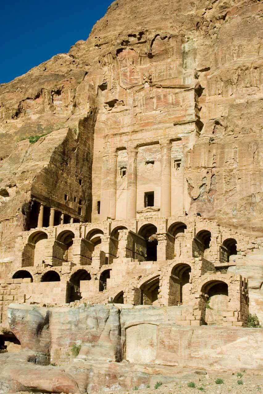 The Urn Tomb is located high above the Outer Siq in Petra on the left as you walk away from the Treasury towards the colonnaded street. it is part of a wider tomb complex carved into the rock and is well worth your time.