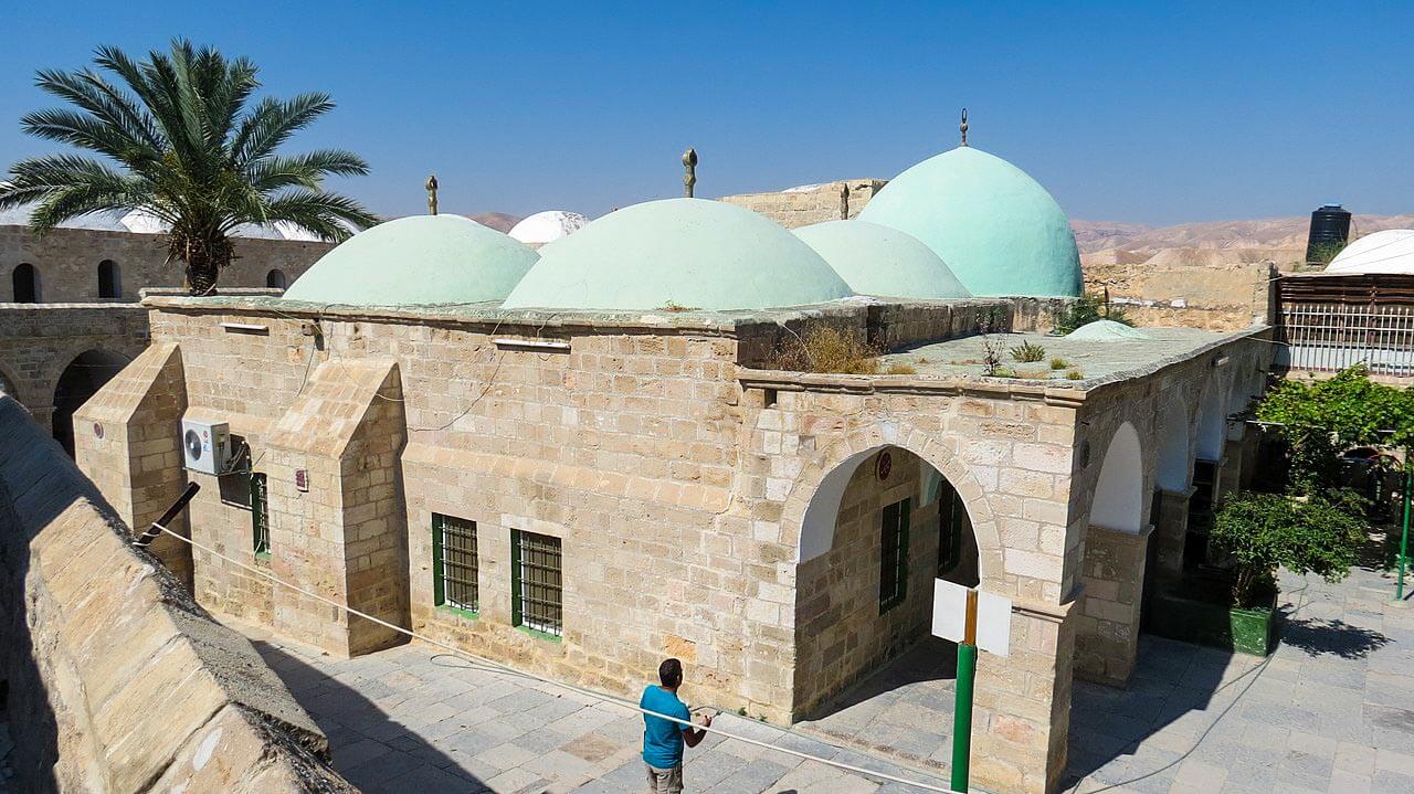 The shrine of Hz. Musa عليه اسلام lies 11 km south of Jericho and 20 km east of Jerusalem in the Judean wilderness.
