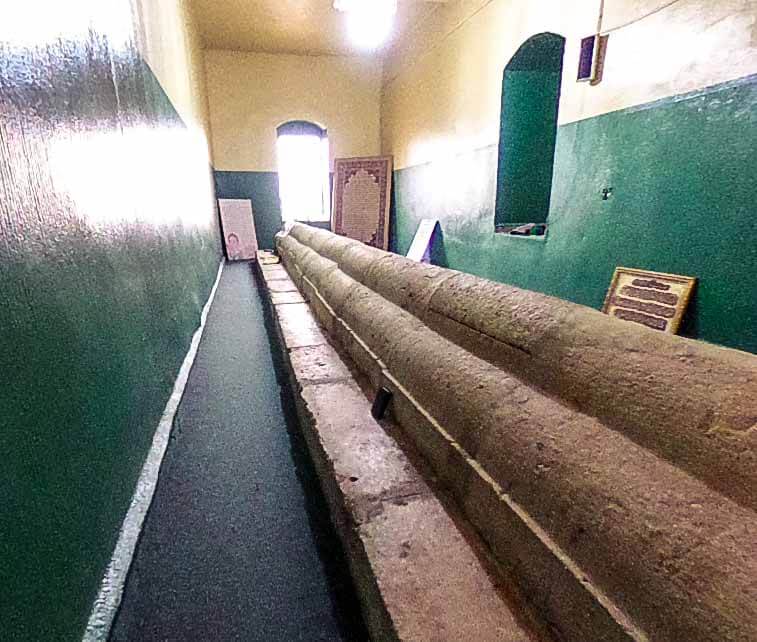 There is also a courtyard outside the building with a prayer niche. The size of the monument possibly derives from tales of ancient giants, but is more realistically suggested to be a section of an ancient aqueduct that has been converted to serve as a shrine.