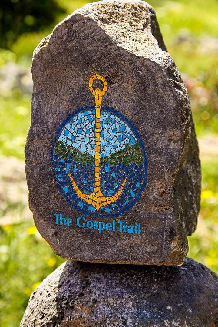 When portions of the Jesus Trail combine with other trails, an additional orange circle is added to the previous trail marker
