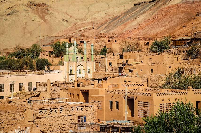It is situated in a small village, Mazar Aldi, near Toyuq Mosque near the township of Tuyoq, Turpan, China.