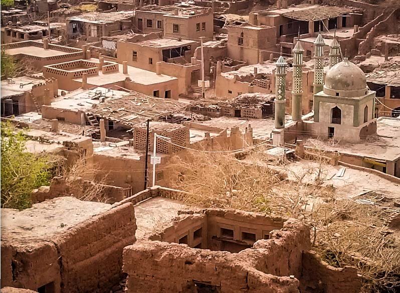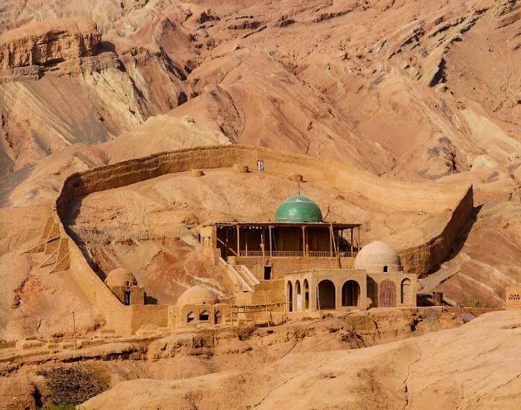 The cave of Ashab-e-Kahf is covered by a mazar with two cupolas which are called gumbaz. The higher one is bright green and quite spectacular.