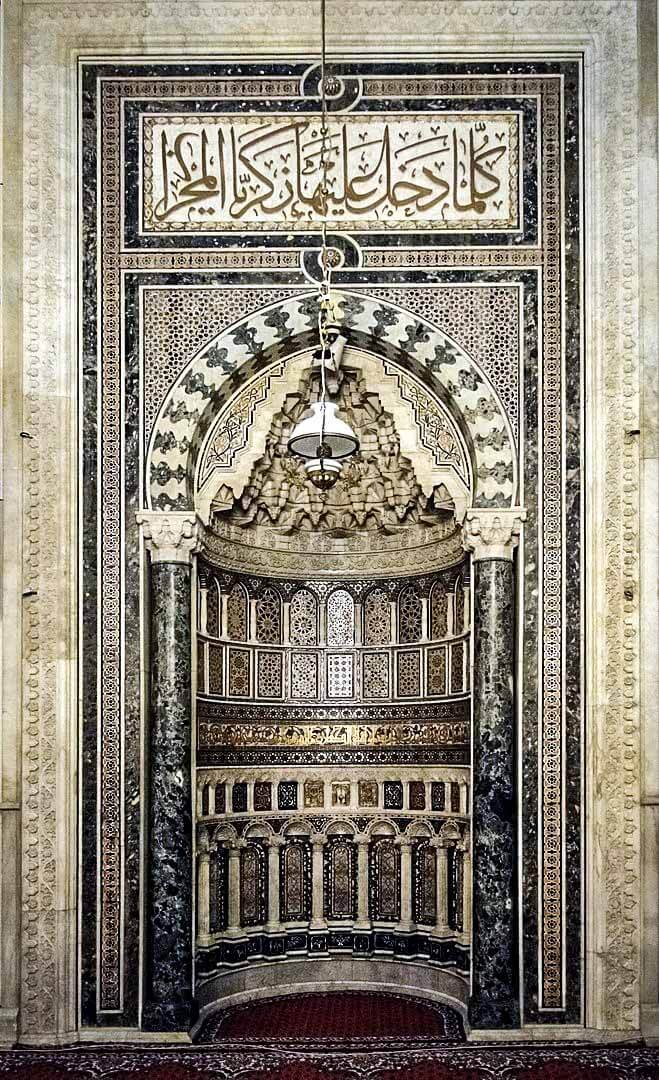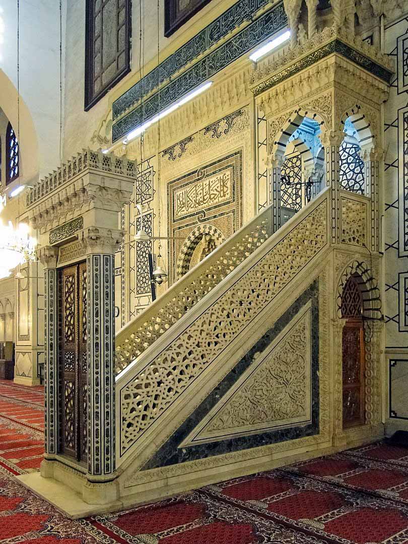 A white pulpit Marks the place where Imam Zayn al-Abidin رضي الله عنه addressed the court of Yazid maloon after being brought from Karbala.