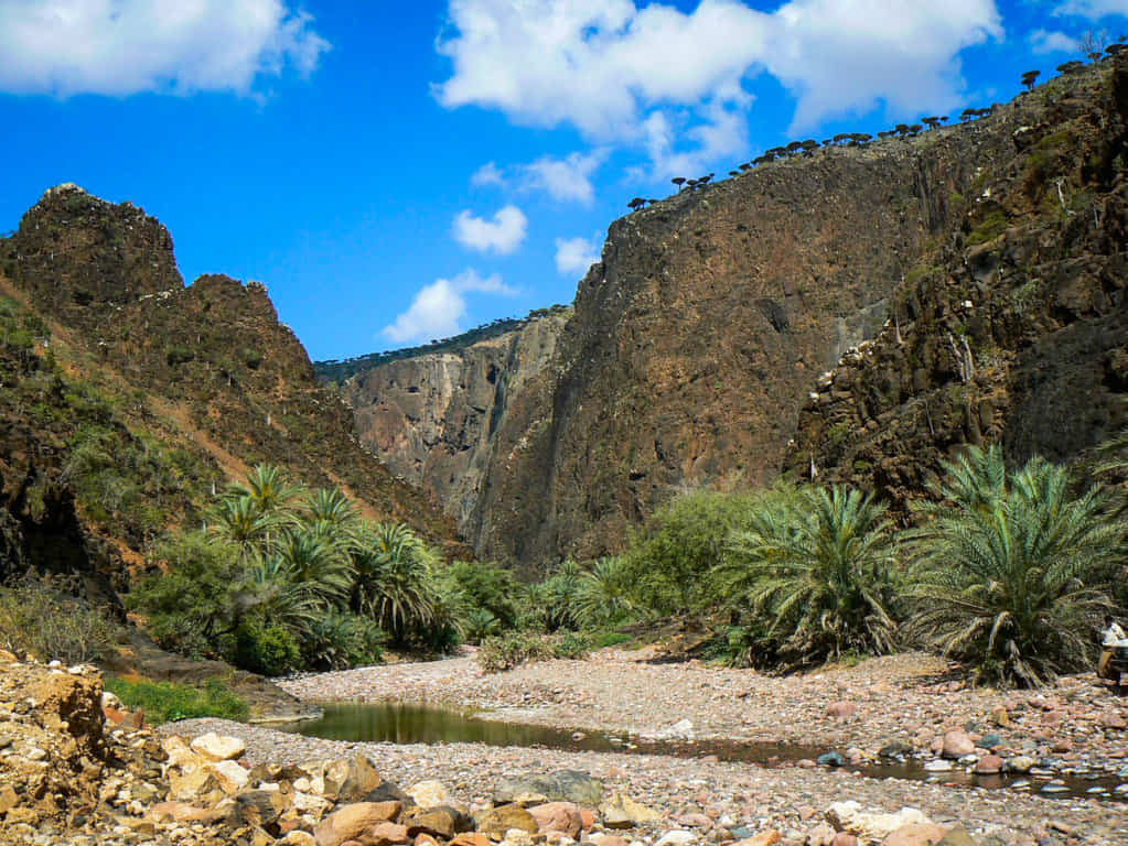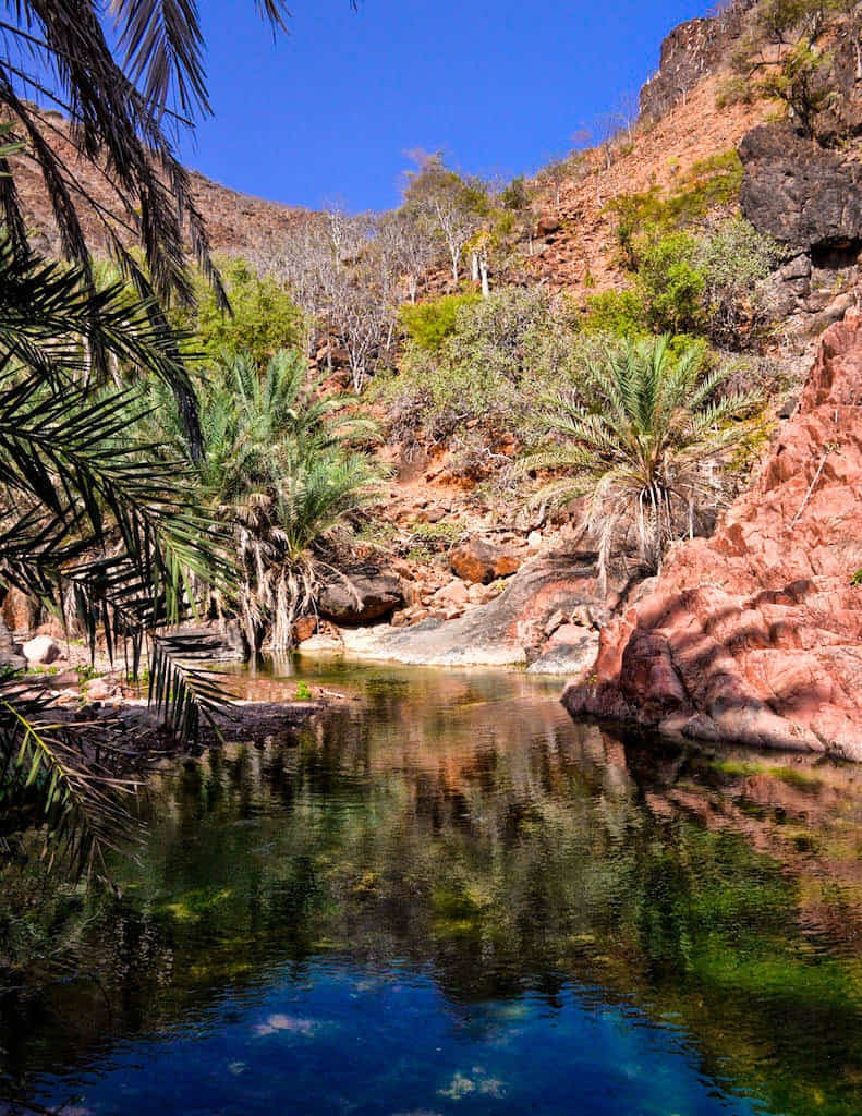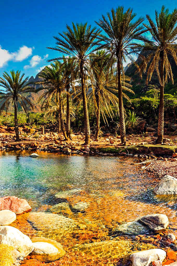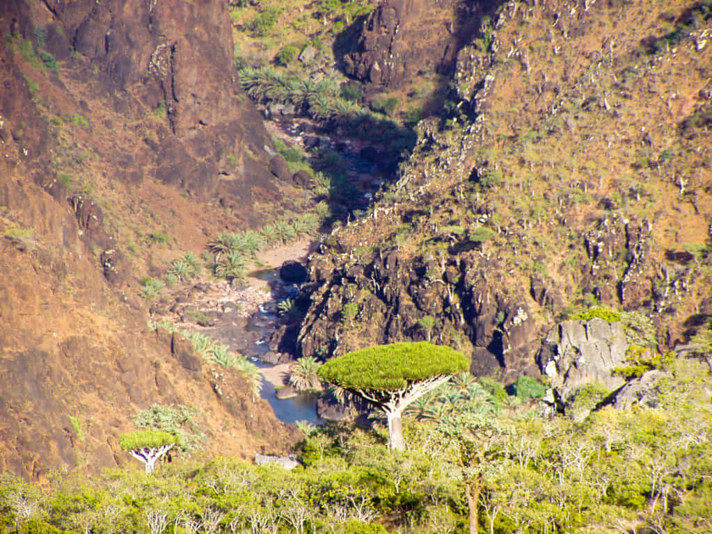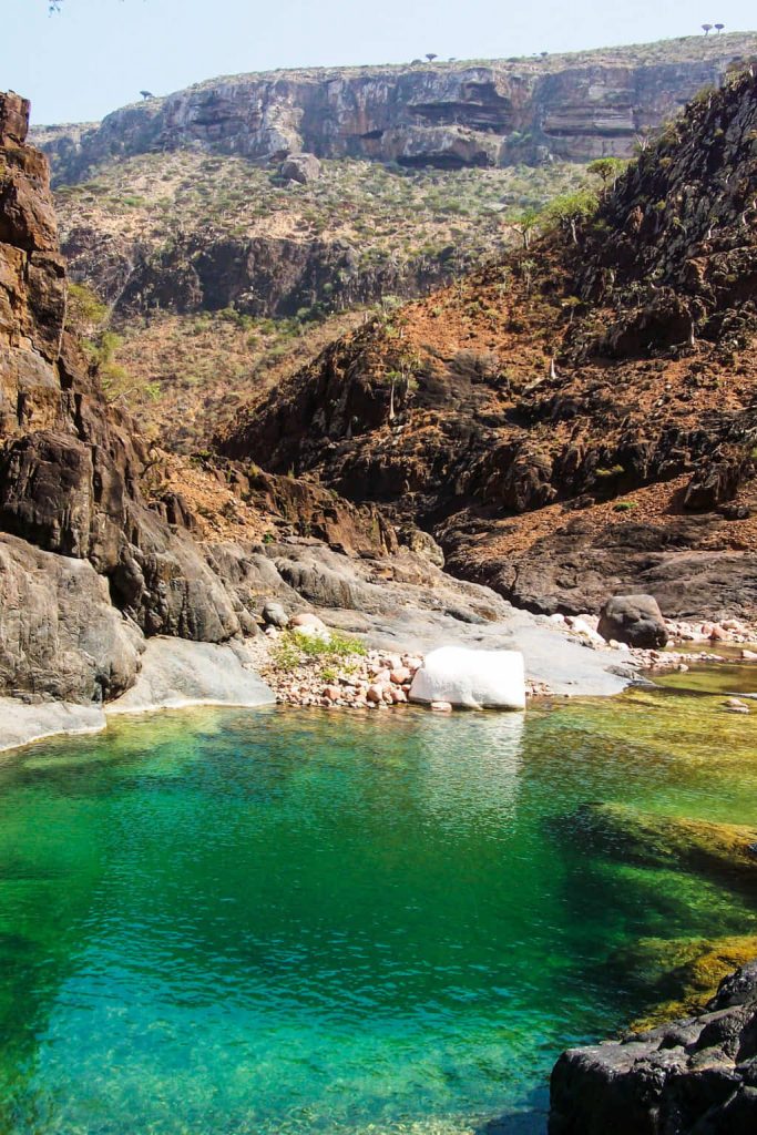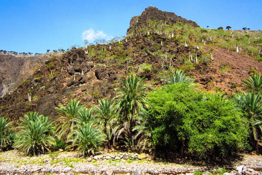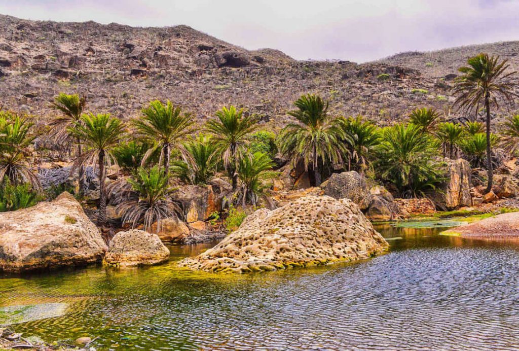 Wadi dirhur, along with Diksum Plateau, is considered Among the best spots in Socotra. The canyon itself is magical. It has an extraordinary ambiance. Lush vegetation overgrows the canyon – look like a tropical garden, which is a different experience after the barrenness of Dixam. There is a beautiful natural pond of the turquoise fresh water pool for swimming just downstream from the road. If you walk upstream, there are some beautiful narrows and smaller lakes. Clumps of palm trees line the edge of the wash, giving the place a truly exotic feel.