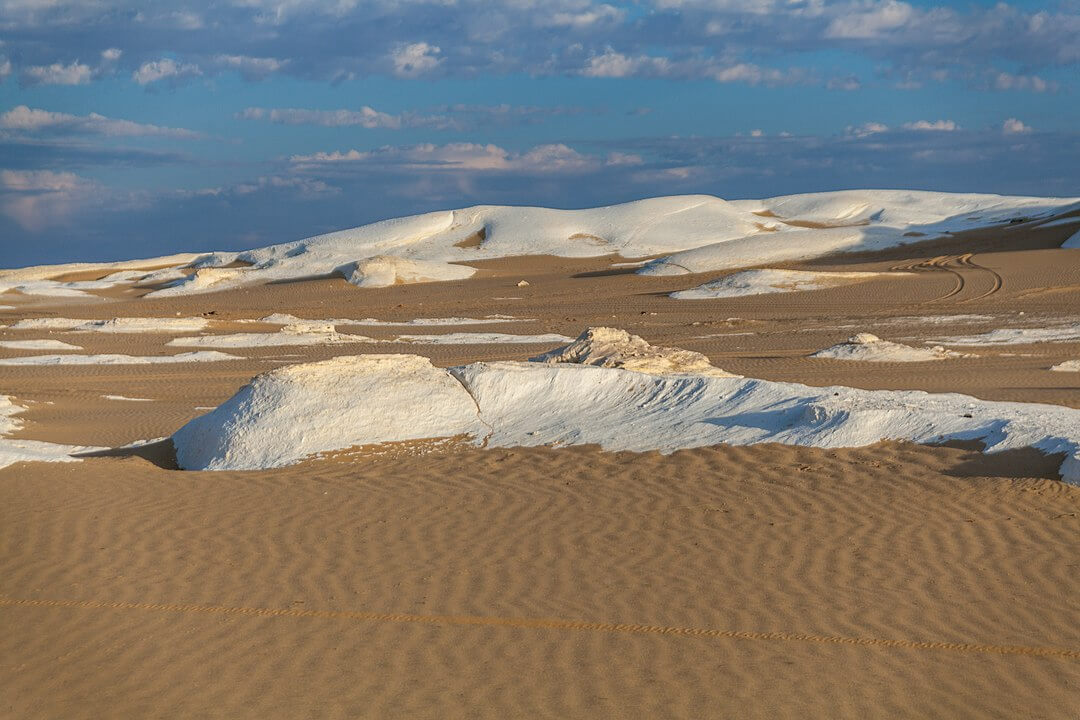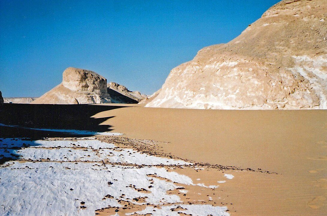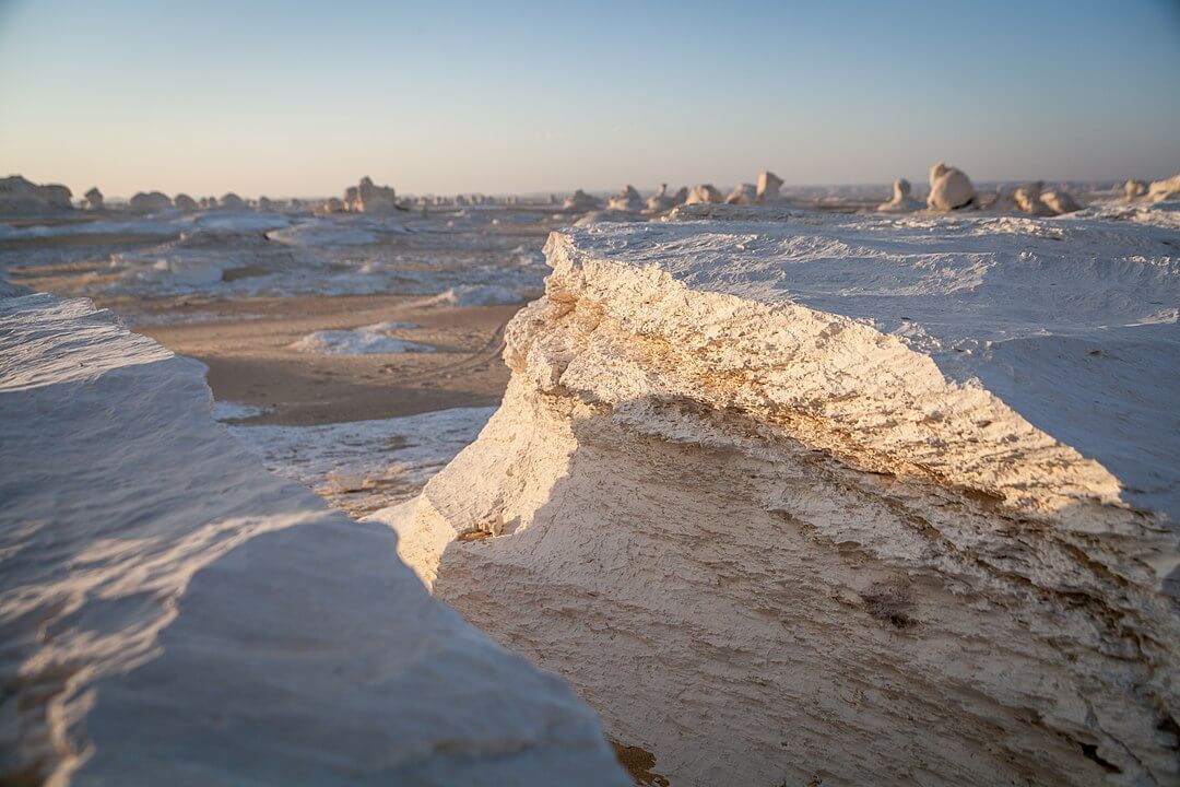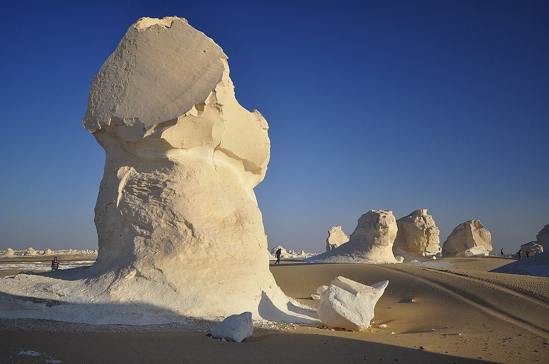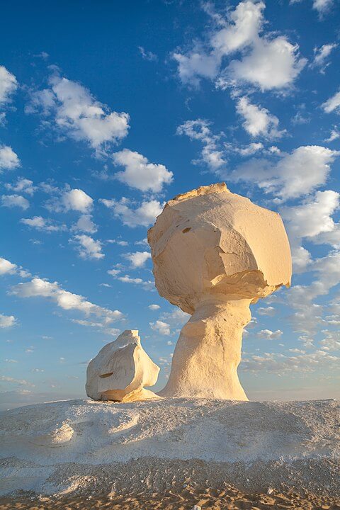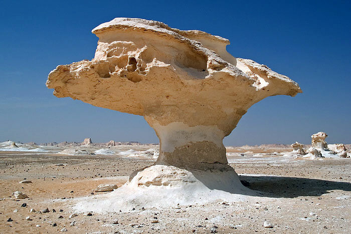 It has massive chalk rock formations that are textbook examples of ventifact and which have been created as a result of occasional sandstorm in the area. The White Desert is a typical place visited by some schools in Egypt, as a location for camping trips